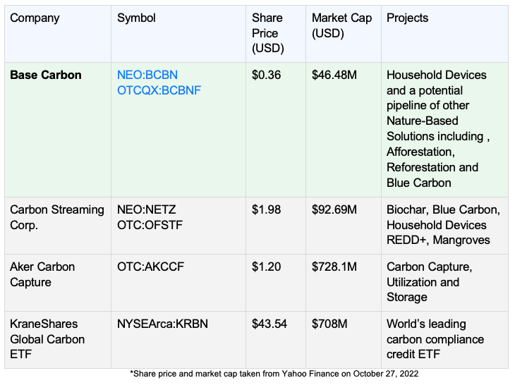 Armed with all of this, Base Carbon is in strong first mover in an emerging public sector that only includes one other comparable company: